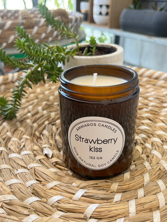 נר שעוות סויה צנצנת חומה בניחוח STRAWBERRY KISS