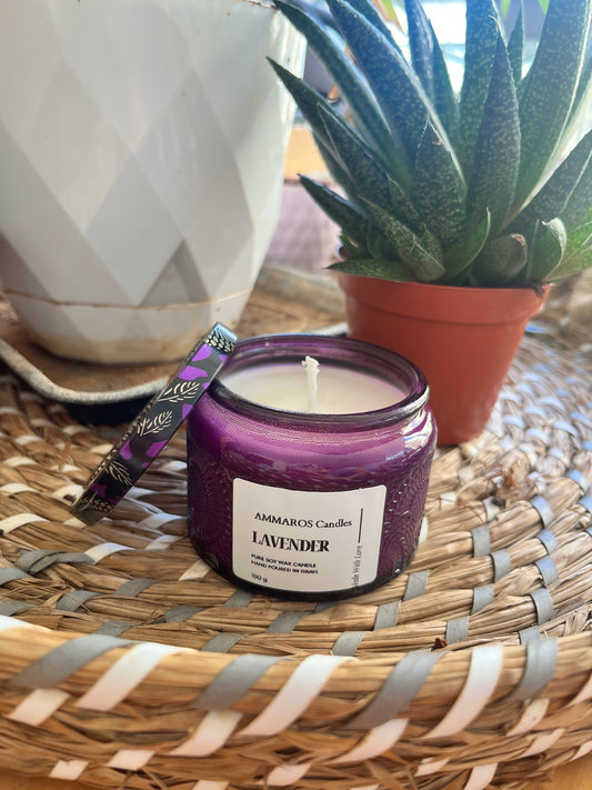 נר שעוות סויה קטן בכלי מעוצב בניחוח LAVENDER