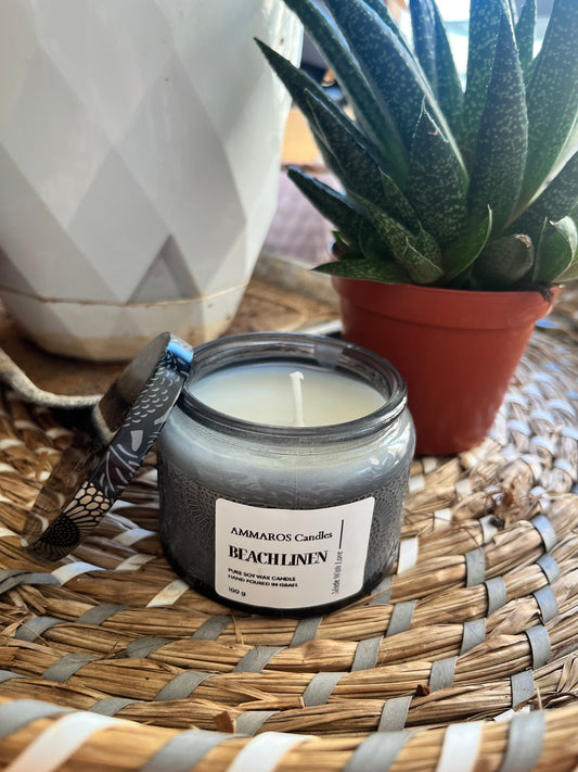 נר שעוות סויה קטן בכלי מעוצב BEACH LINEN